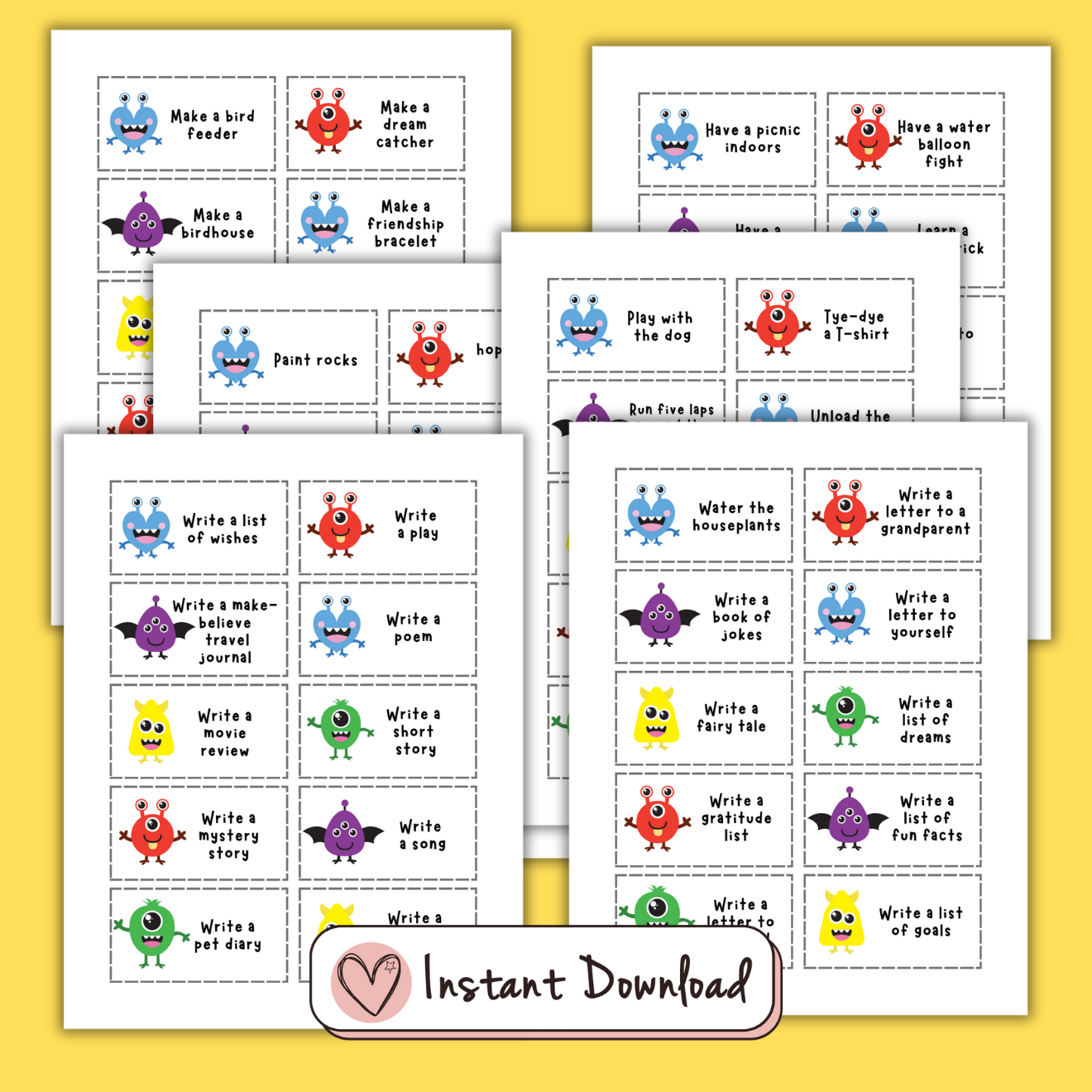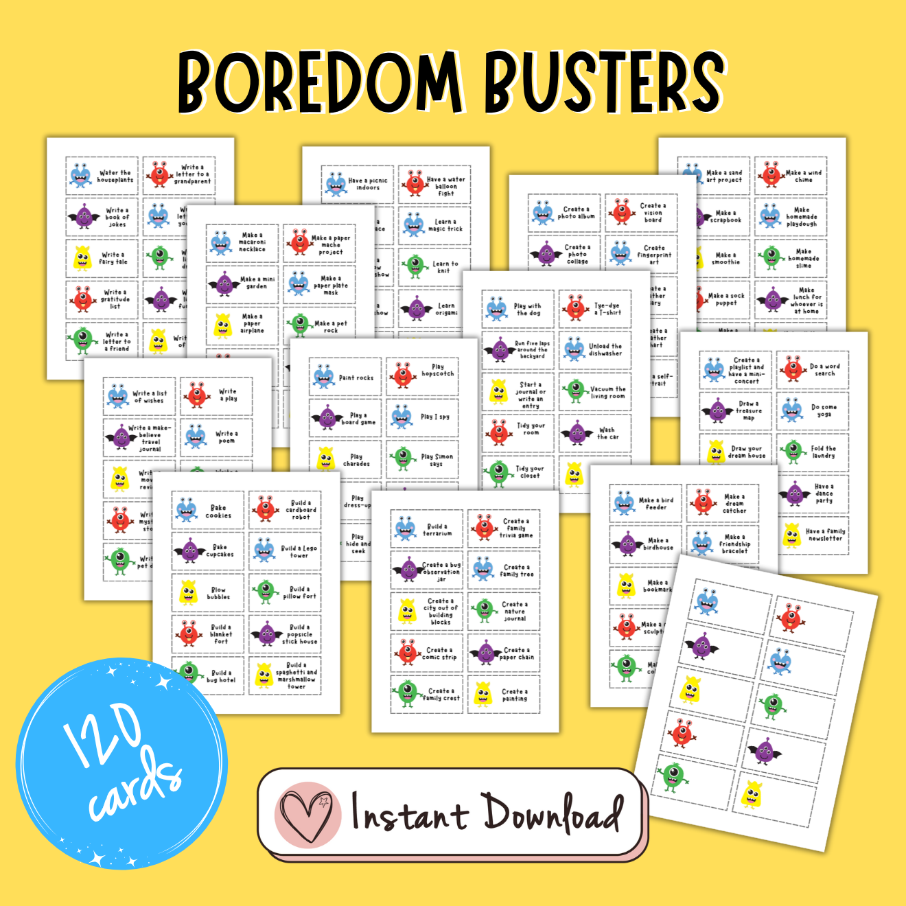 Simplemente recorta las tarjetas y colócalas en un frasco, listas para usar ante la primera señal de aburrimiento.