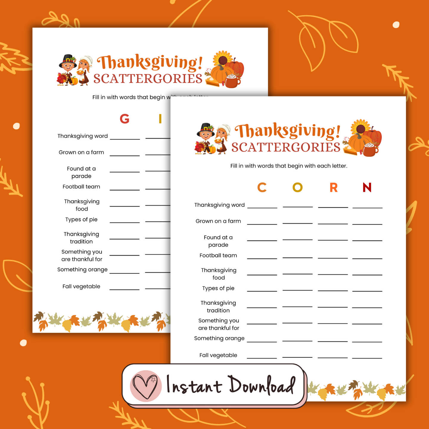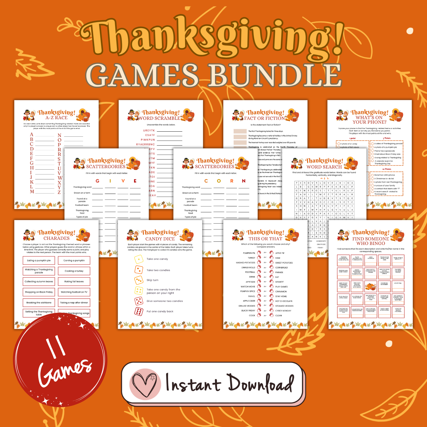¡Prepárate para divertirte el Día del Pavo con nuestro paquete de juegos de Acción de Gracias! Este paquete incluye 11 juegos súper divertidos que son perfectos para reuniones y encuentros familiares.